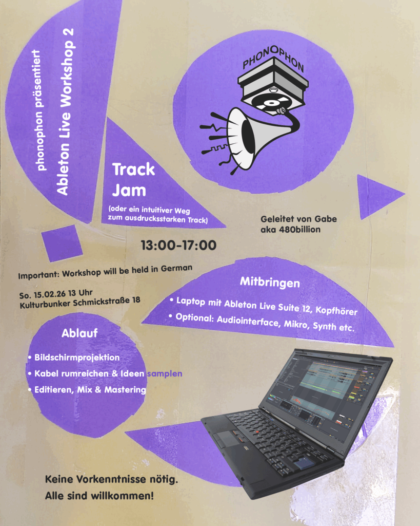 #AbletonLive #AbletonWorkshop #Phonophon #KulturbunkerFrankfurt #MusikWorkshop #CreativeFlow #PatchAndResample #MaxForLive #ExperimentalSound #LaptopMusic